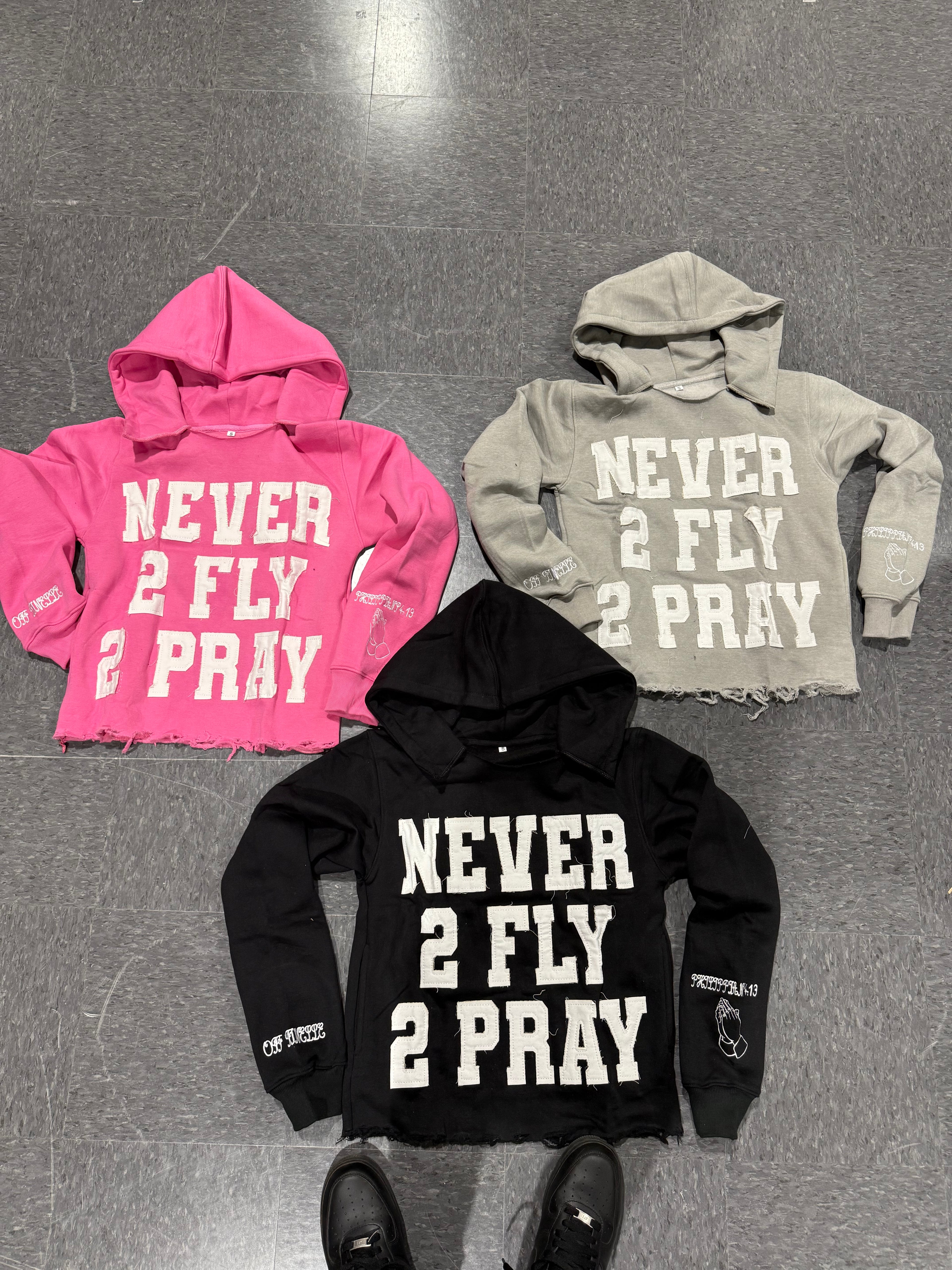 BLACK NEVER 2 FLY 2 PRAY HOODIE